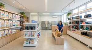 Rações, medicamentos, acessórios e brinquedos. Exige controle de validade e giro de estoque.
